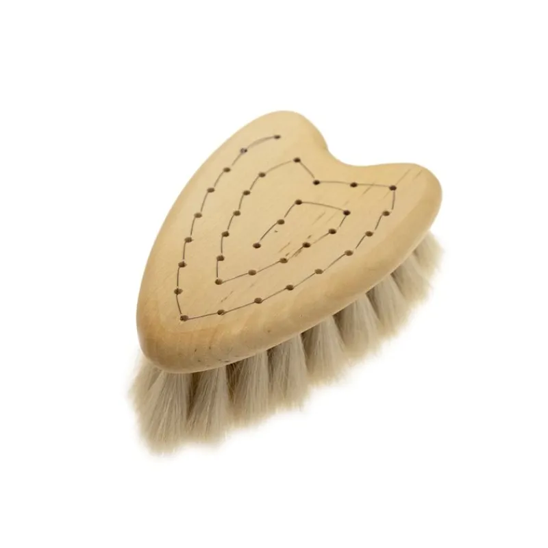 Ett litet hjärta för de allra minsta. Det mjuka gethåret lägger skonsamt tillrätta babyns slingor av hår. OBS! Ska ej användas i blött hår då gethåret tovar ihop sig i vatten.