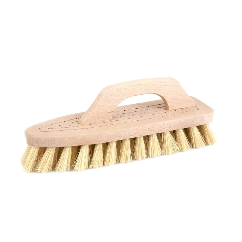 En allsidig skurborste för grövre rengöring som kan användas för att skura såväl trasmattor, golv och badkar mm. En variant av den klassiska panelborsten men med ett praktiskt handtag. Handdragen med borst av vit fiber.