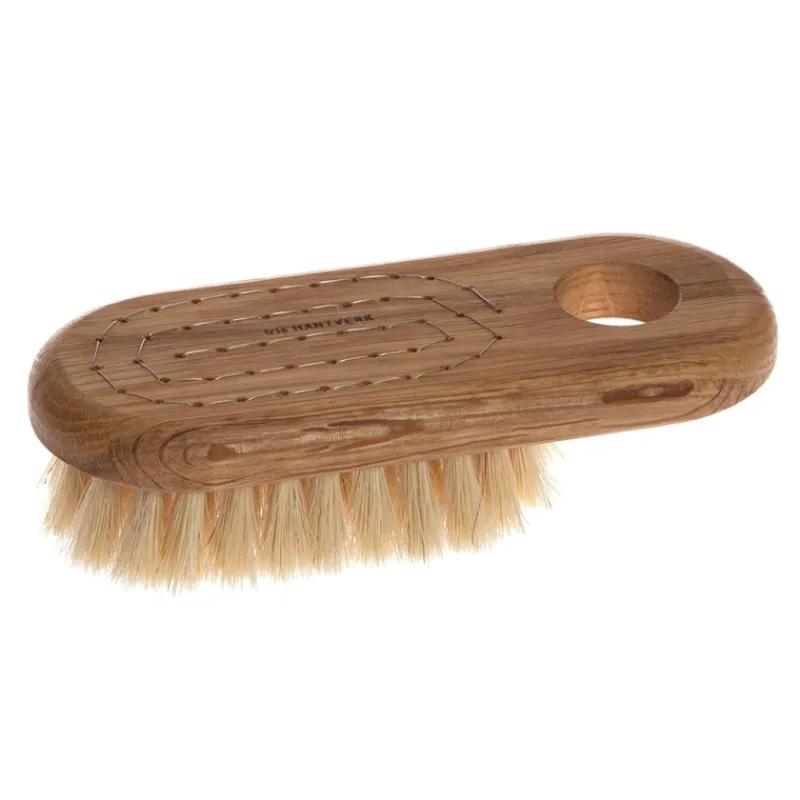 Badborste i oljad ek och tagel/fiberblandning för lite extra skrubbeffekt. Borsten får en mjukhet av taglet samtidigt som vit fiberns styvhet ger lite mer riv, borsten är perfekt för den som inte är ömhudad. Låt den torka stående på borsten så att vattnet transporteras bort från trät som är mer känsligt för fukt.