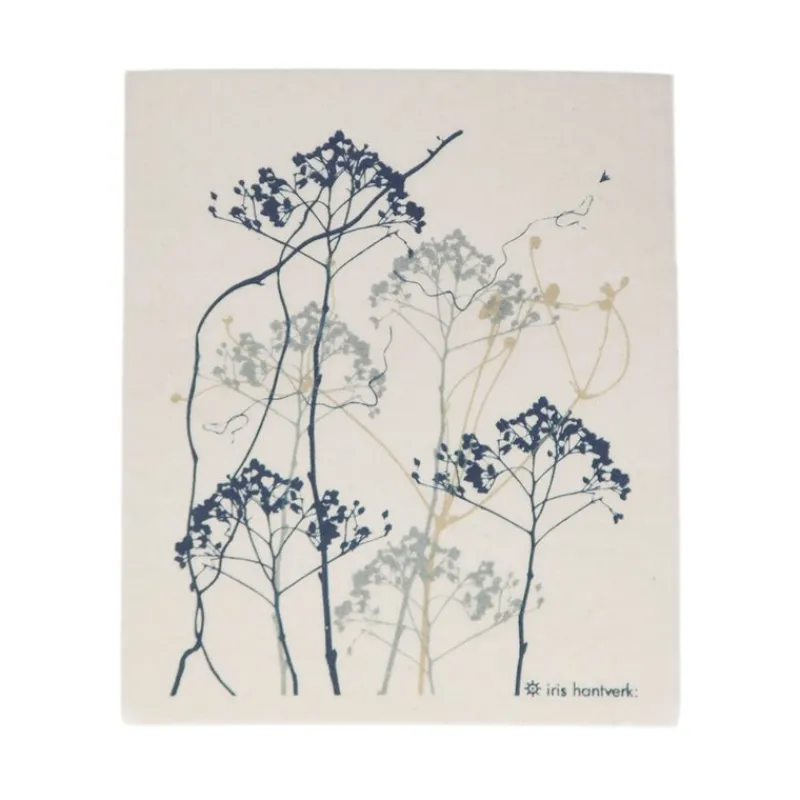 Diskduk i naturlig cellulosa och bomullsfiber med tryck i blått och beige tryck. Miljövänlig disktrasa som tål att kokas eller tvättas i 90 grader, komposterbar.