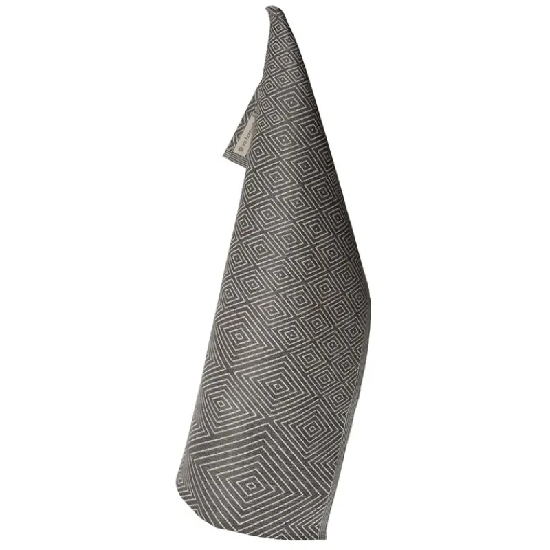 Grafitgrå kökshandduk i en modern version av det klassiska mönstret gåsöga. Handduken passar för såväl disk som händer. Fin kvalité i 100 % lin, vävd i Sverige.