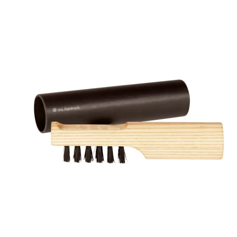 Styv borste i svart chunking som hjälper till att lyfta mockafibrerna. Borsta med mjuka cirkulära rörelser för att lyfta mockan och avlägsna smuts och damm innan du impregnerar.