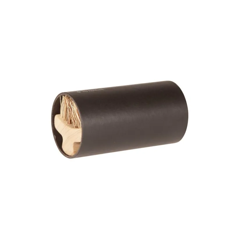En rejäl borste med stadigt grepp för att rengöra riktigt skitiga och leriga stövlar och kängor. Förvara i den praktiska papptuben så slipper du smuts och kladd i skoputslådan.