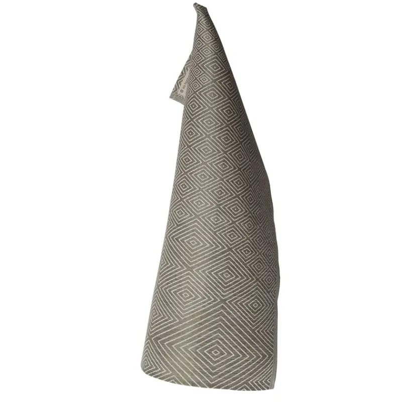 Dimgrön kökshandduk i en modern version av det klassiska mönstret gåsöga. Handduken passar för såväl disk som händer. Fin kvalité i 100 % lin, vävd i Sverige.