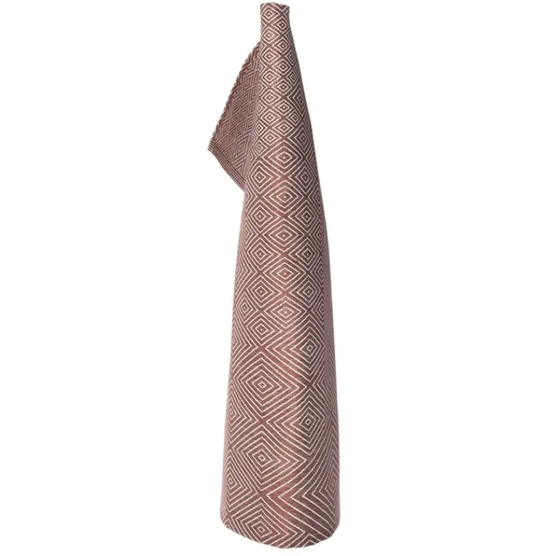 Rostbrun kökshandduk i en modern version av det klassiska mönstret gåsöga. Handduken passar för såväl disk som händer. Fin kvalité i 100 % lin, vävd i Sverige.