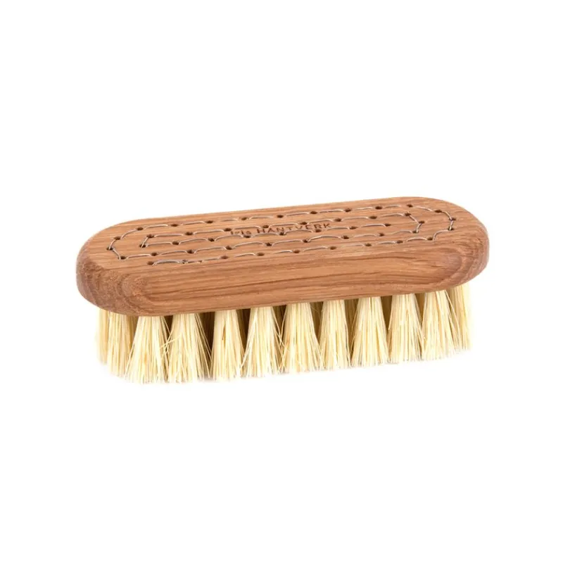 Nagelborste i oljad ek och vit fiber. Enkelsidig nagelborste som är både snygg och skön att hålla i. Vit fiber är elastiskt och vattentåligt med en viss styvhet men utan att bli allt för hårt vilket gör materialet skönt och praktiskt vid rengöring av händer och naglar.