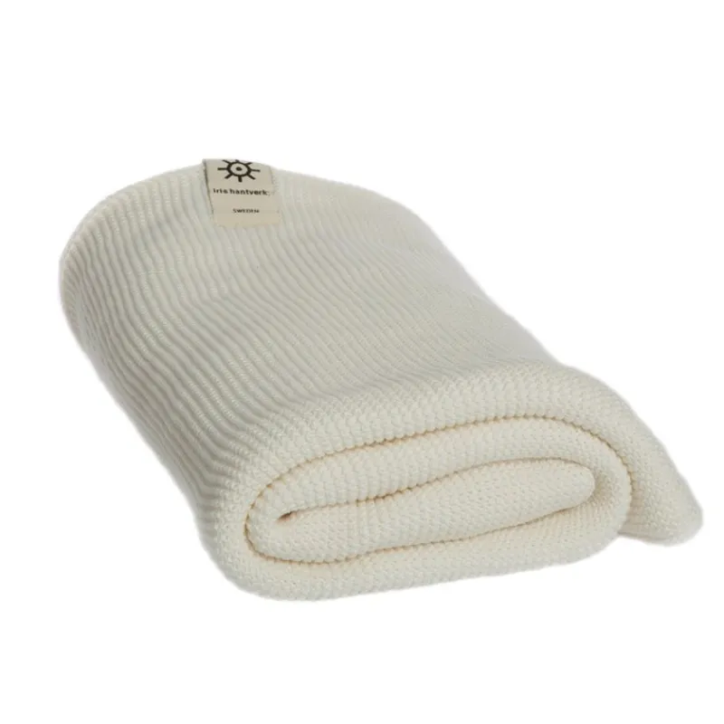 Badlakan i stickad ekologisk bomull. Den ekologiska bomullen har en härlig mjukhet och följsamhet samtidigt som stickningen ger en skön peelingkänsla. Stort och härligt badlakan. Material 100% bomull.