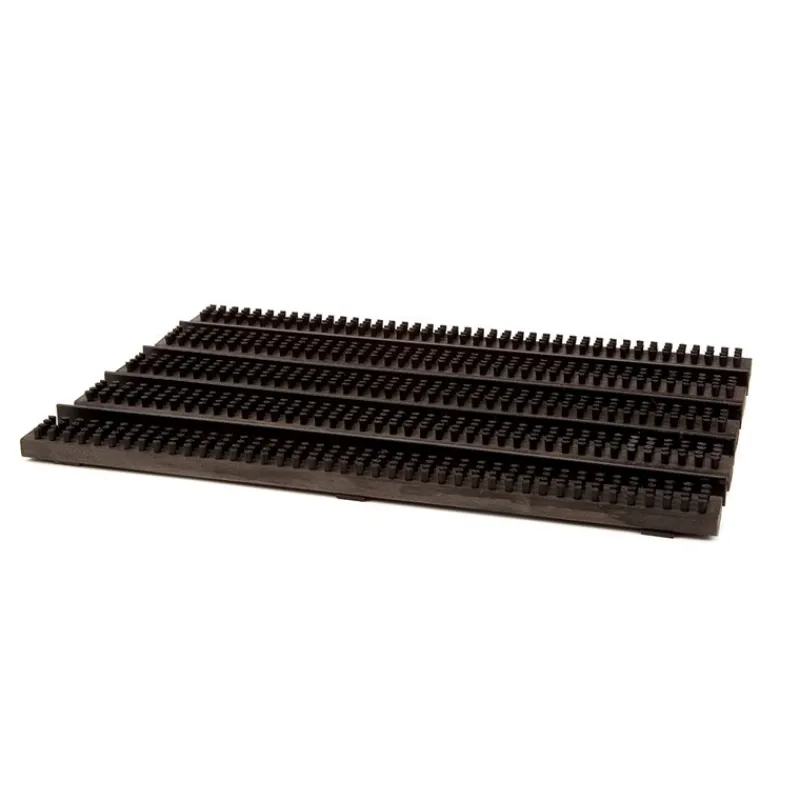 Entrématta för utomhusbruk. Undvik att dra in jord och sand från smutsiga skor genom att borsta av skorna ordentligt på den slitstarka entrémattan i syntetborst och stål. Mattan tål väder och vind men för längsta hållbarhet så skyddas den bäst under tak. Maskintillverkad.