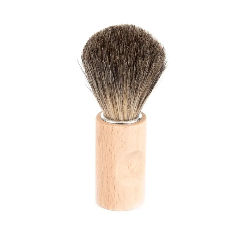 Rakborste i bok och grävlingshår. Maskintillverkad. Grävlingshår absorberar vatten naturligt vilket gör det optimalt för rakborstar. Fukta borsten och jobba upp ett lödder från raktvålen som sedan appliceras i ansiktet.