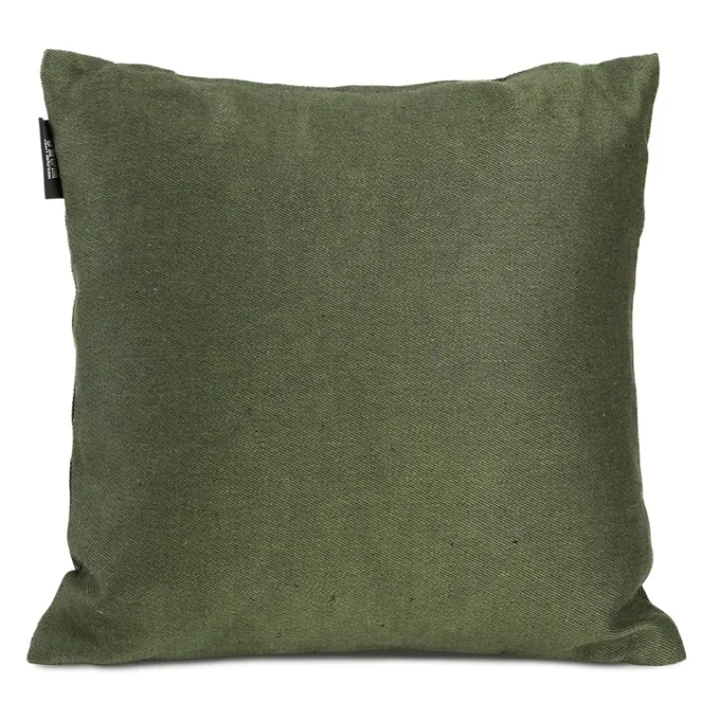Demi kudde i mossgrönt och svart. Kudden är tillverkad av 100% lin på Klässbols linneväveri. Det är olika vävtekniker på de två sidorna vilket ger kudden olika färgupplevelse och uttryck. Vacker att inreda med i både vardags- och sovrum.