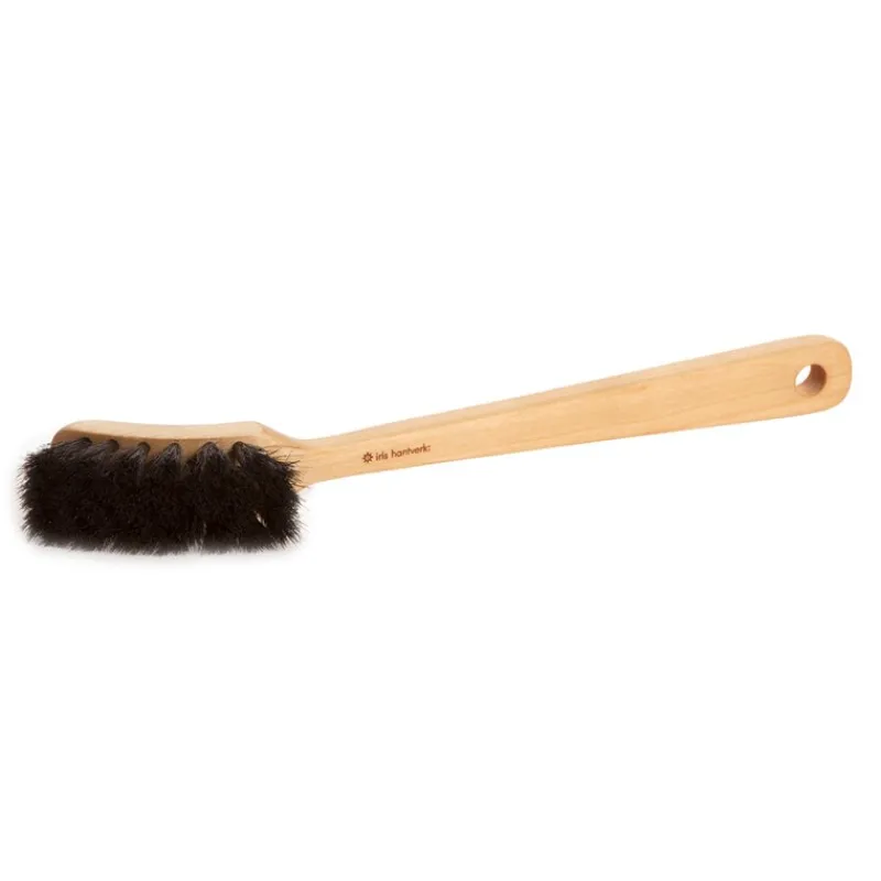 Böjd diskborste i trä av oljad björk och mörk tagel. Skaftets böjning gör att borsten passar utmärkt för disk av vinglas vars rundade botten annars kan vara svår att nå. Passar till knopplist 2190-00.