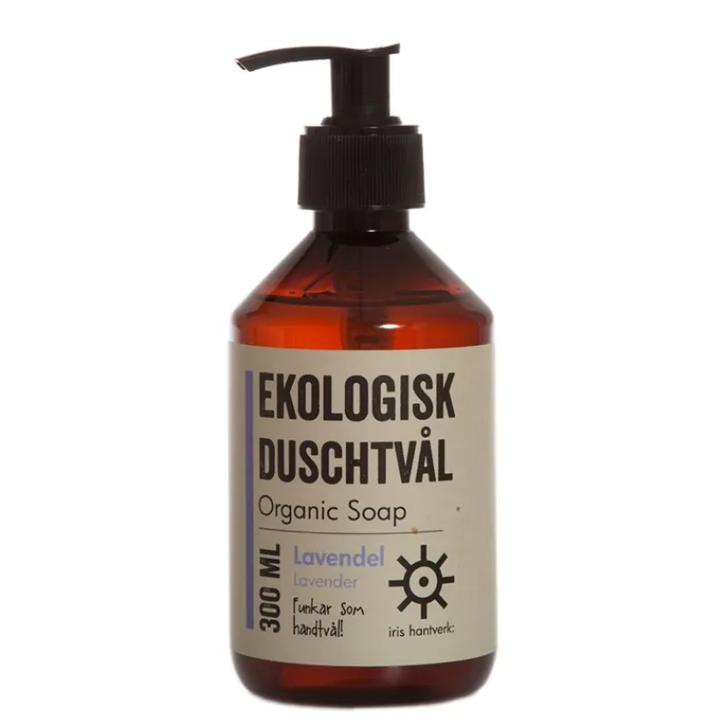 En ekologisk duschtvål som är återfuktande och mild. Tillverkad av ekologiska vegetabiliska oljor som t ex solrosolja och cocosolja. Doftsatt med eterisk olja av lavendel. Fungerar även utmärkt som handtvål.