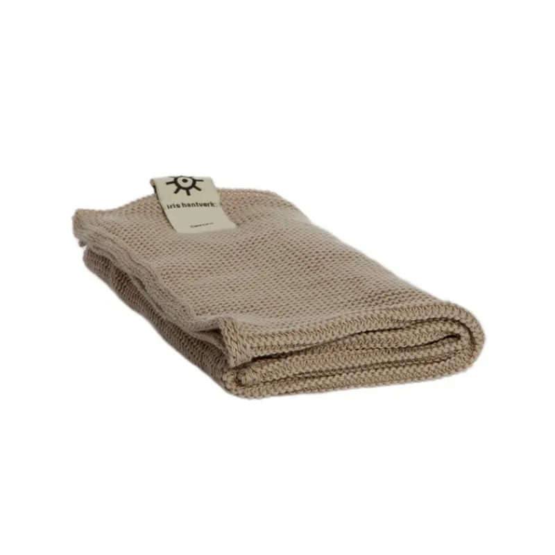 Stickad handduk i ekologisk bomull. Den ekologiska bomullen har en härlig mjukhet och följsamhet samtidigt som stickningen ger en skön peelingkänsla. Handduken passar bra i badrummet men också i köket som en handhandduk. Material 100% bomull.